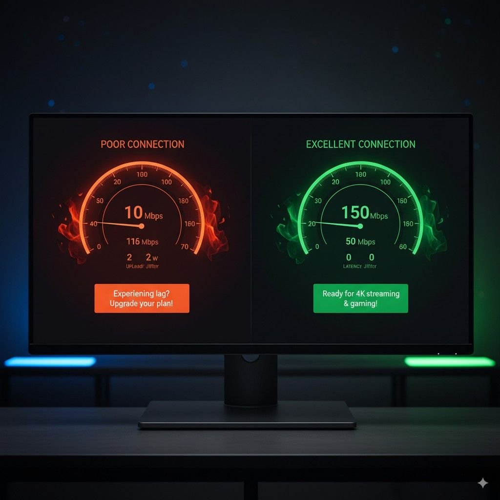 Run speed tests at different times throughout the day to identify patterns. Many users discover their “50 Mbps” package delivers only 15-20 Mbps during evening hours when buffering problems peak.
